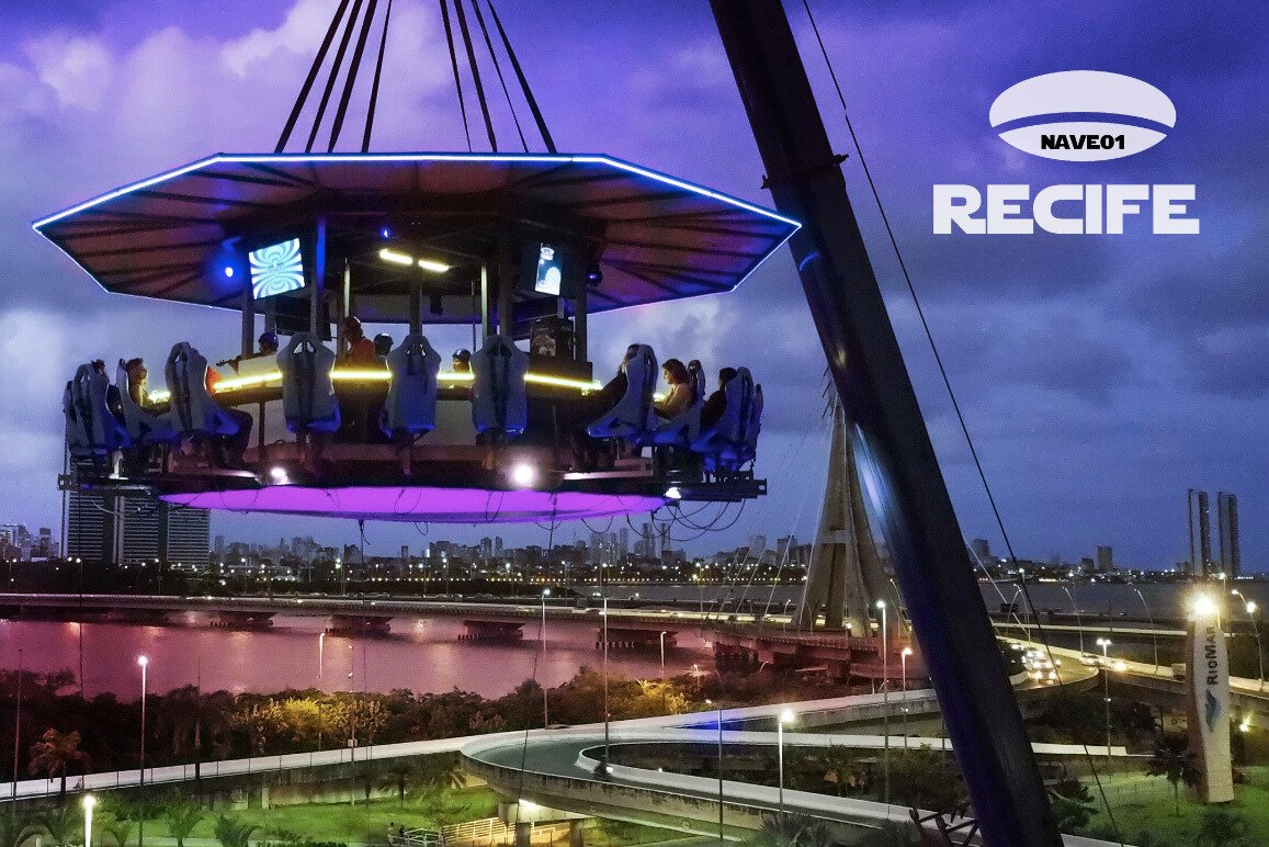 Então não precisa mais imaginar, na cidade de Recife em Pernambuco, o restaurante suspenso NAVE 01 trouxe esta experiência que dura 1 hora e dá direito a degustar o menu surpresa assinado por chefs renomados composto por entrada, prato principal e sobremesa, além do open bar (água, suco, refrigerante, cerveja, espumante, vinhos e whisky), podendo ser no almoço, no por do sol ou a noite, nos deixando sem saber qual horário melhor para escolher, pois todos os horários a vista é perfeita. O restaurante possui 24 cadeiras, uma cozinha no centro e é suspenso por um guindaste com uma estabilidade perfeita. E para deixar o seu momento ainda mais especial em alguns dias você terá um acompanhamento com um show com sax ou violino, deixando seu momento único.